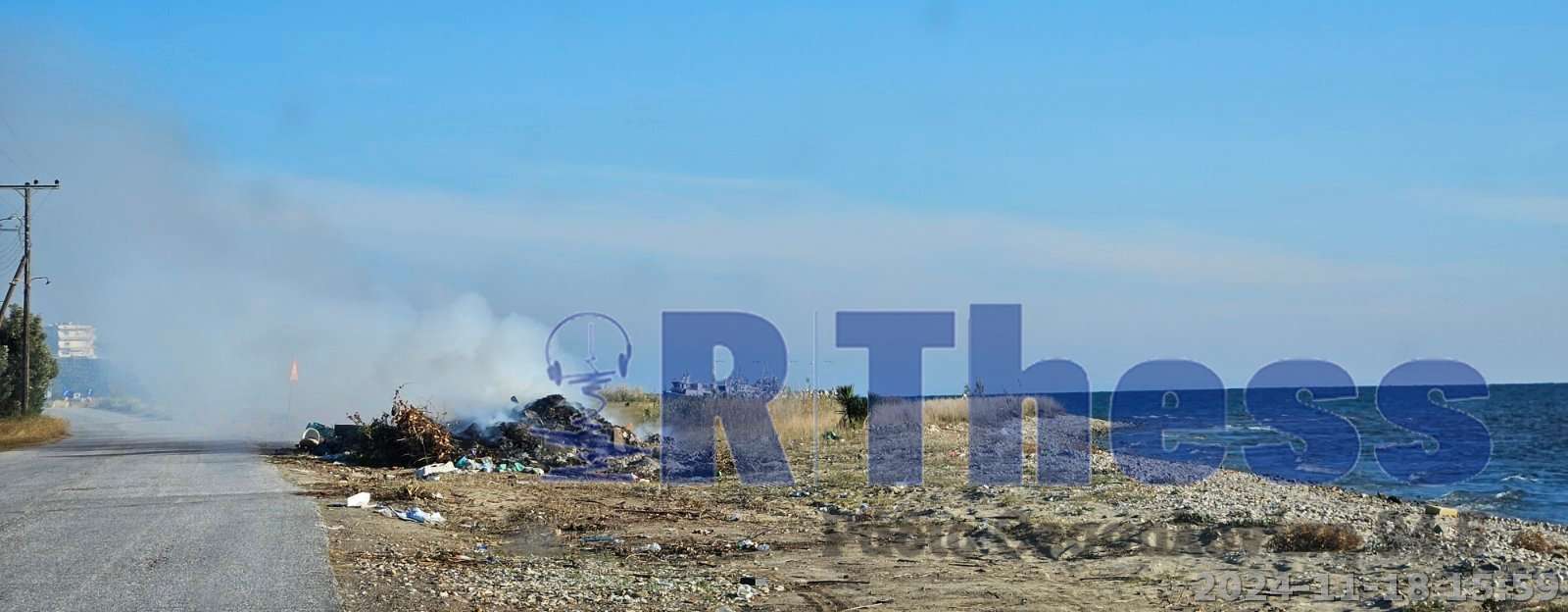 Καταγγελία ακροατή για απορρίμματα που παραδίδονται στις φλόγες στην παραλία της Νέα Καλλικράτειας στην Χαλκιδική.