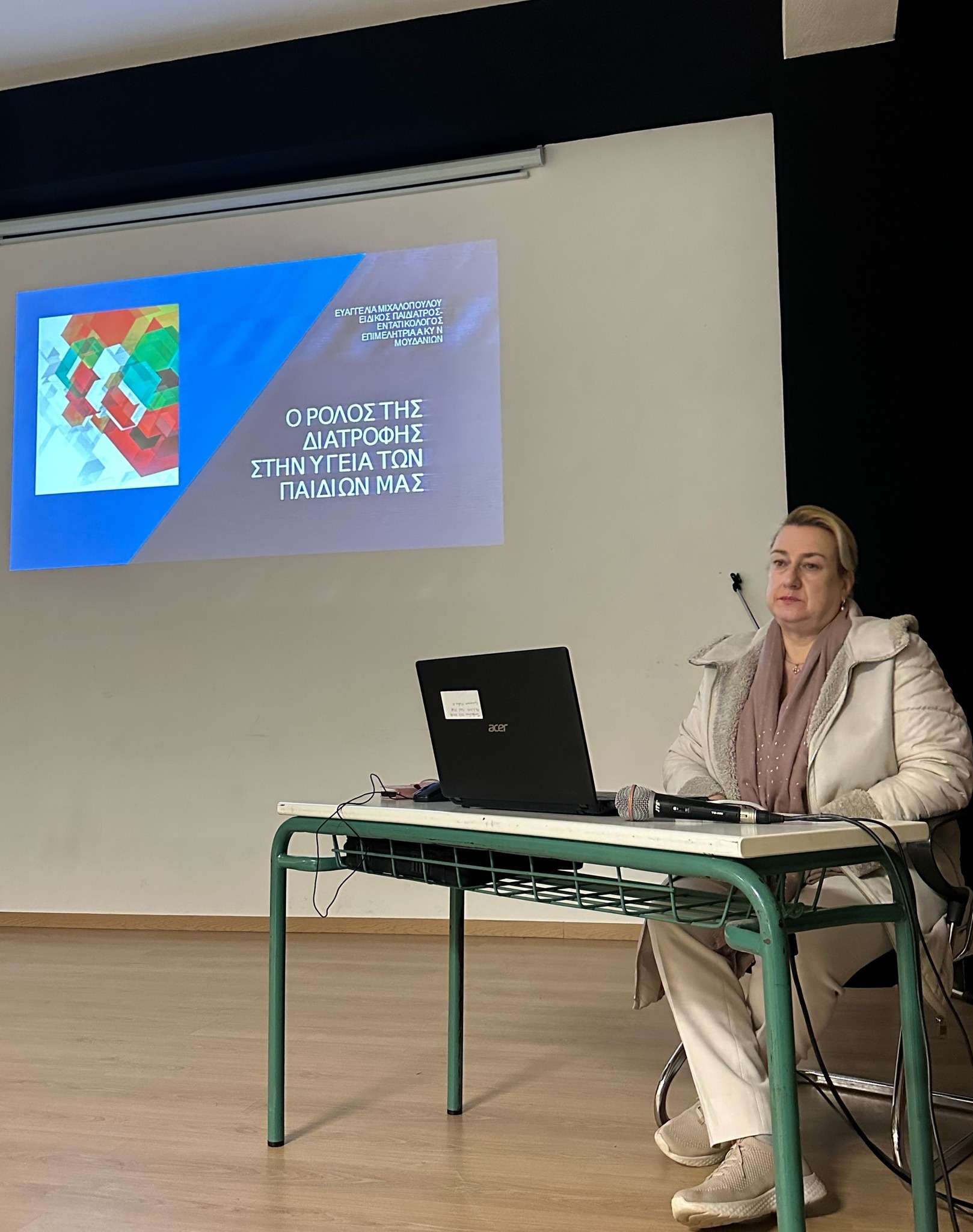 Η παιδίατρος Μιχαλοπούλου Ευαγγελία, μέσα από μια κατανοητή και εμπεριστατωμένη παρουσίαση, ανέλυσε τη σημασία της σωστής διατροφής στην ανάπτυξη των παιδιών και των εφήβων. Οι παρευρισκόμενοι, γονείς και εκπαιδευτικοί, είχαν την ευκαιρία να ενημερωθούν για: