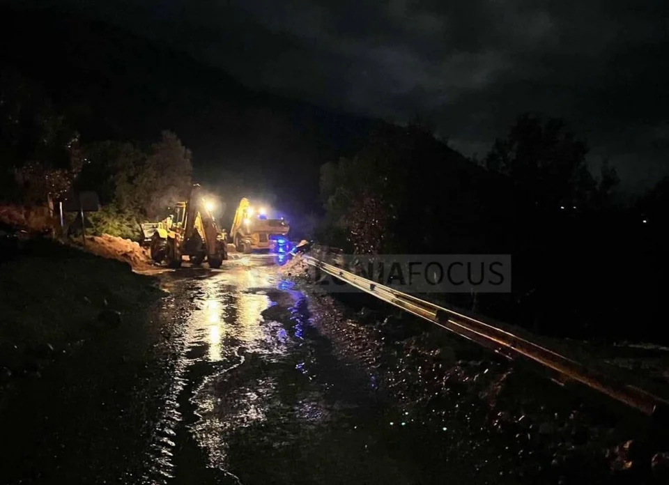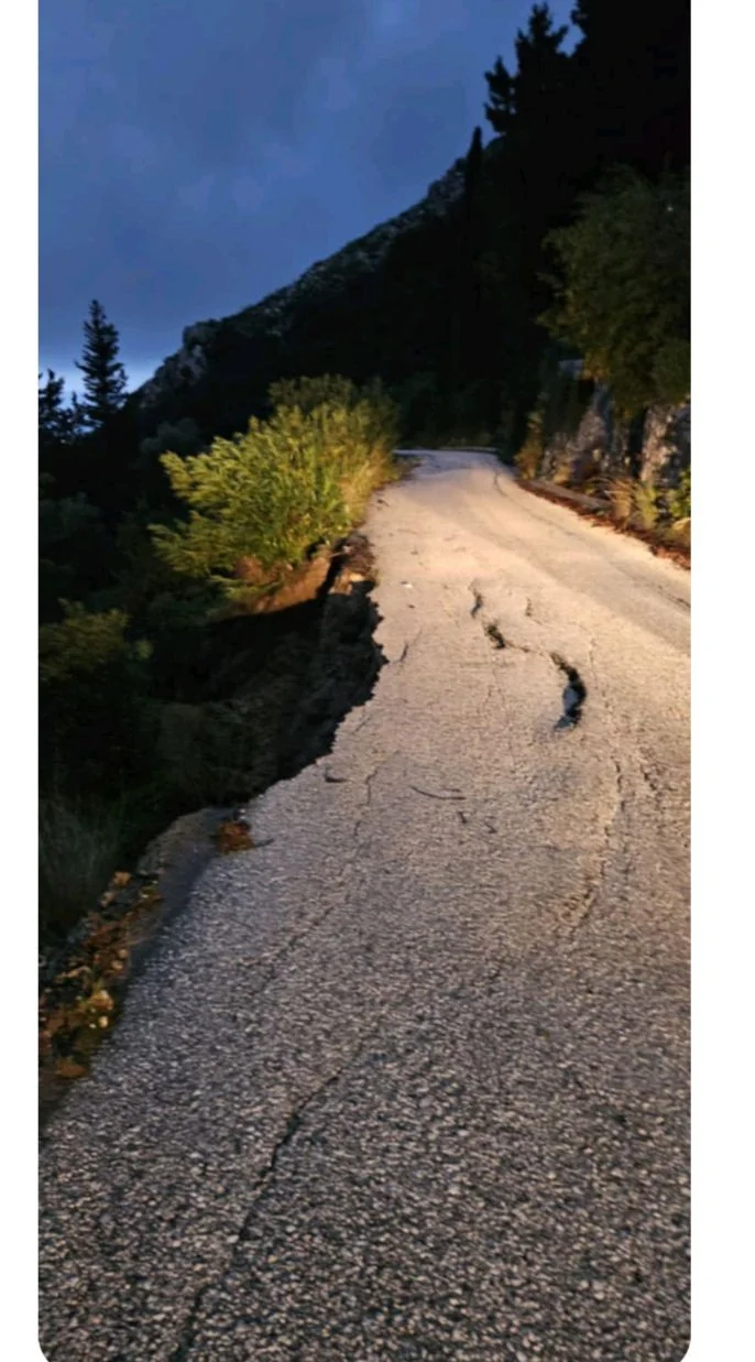 Στο χωριό Κολαΐτη, έξω από το σπίτι του Μπούζου, μεγάλο μέρος του δρόμου υποχώρησε, δημιουργώντας σοβαρότατο πρόβλημα στη διέλευση.