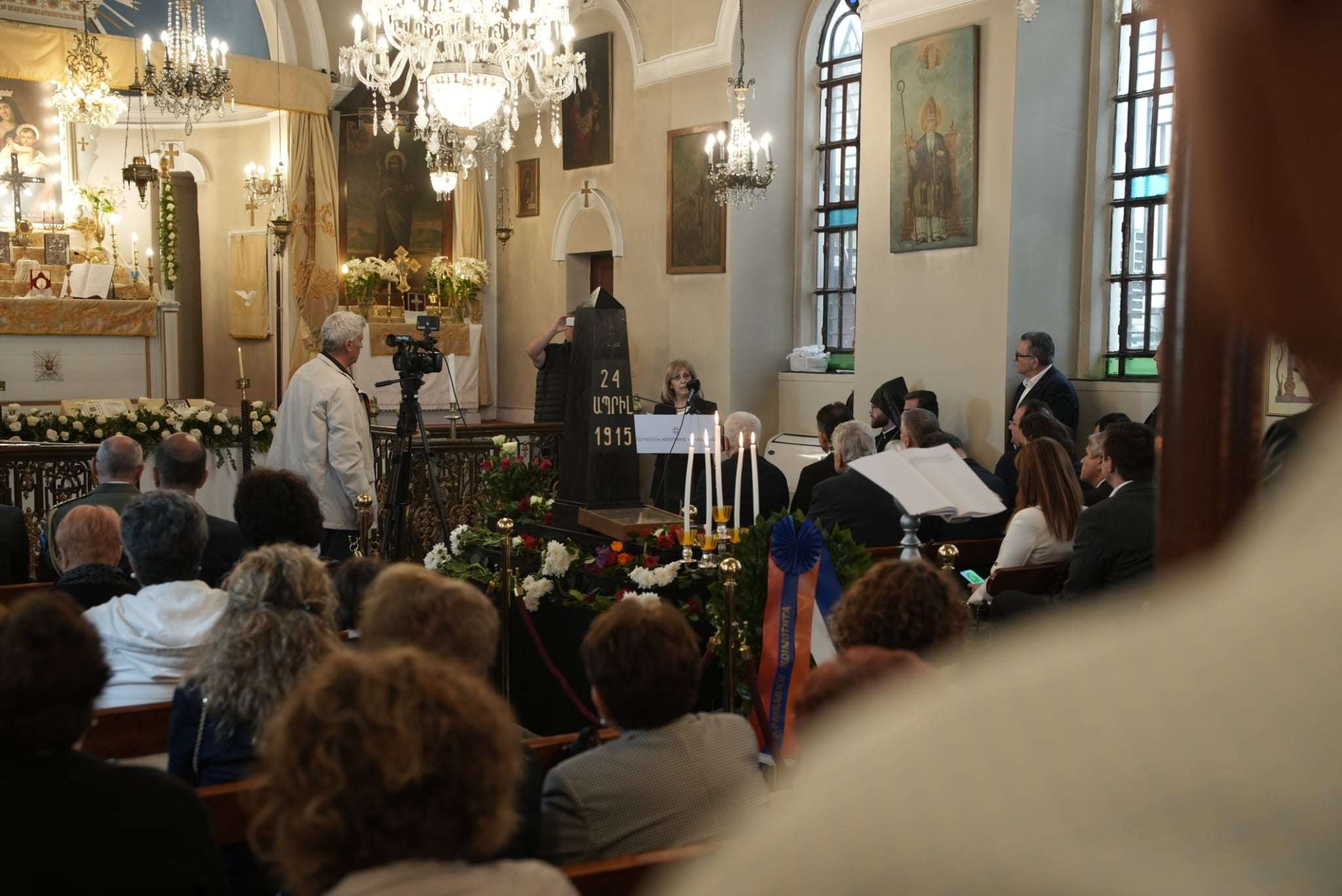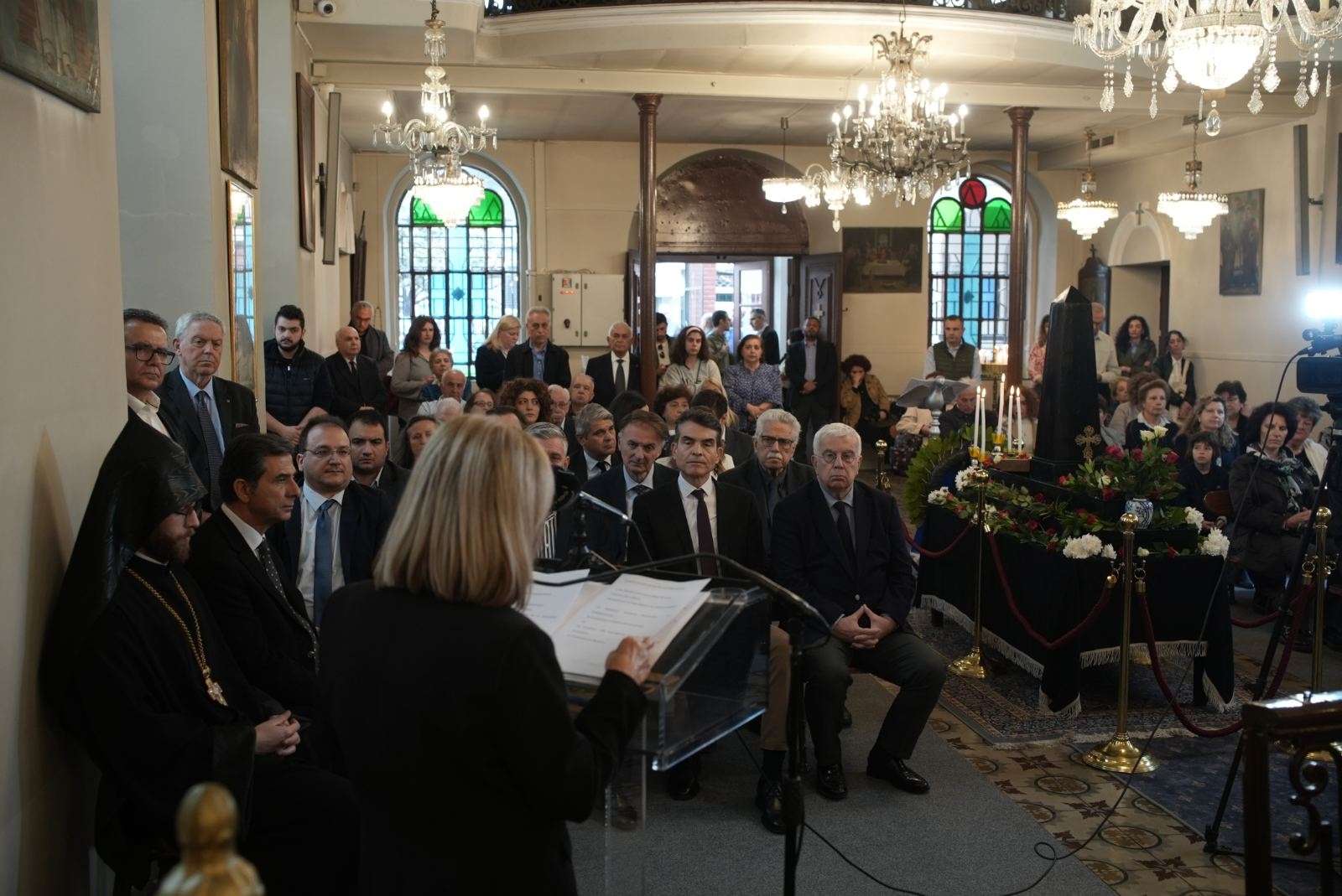 Η κ. Αηδονά, συνοδευόμενη από τον Αντιπεριφερειάρχη Θεσσαλονίκης Κώστα Γιουτίκα, την Αντιπεριφερειάρχη Τουρισμού Βίκυ Χατζηβασιλείου, τον Πρόεδρο του Αναπτυξιακού Οργανισμού της Περιφέρειας Κεντρικής Μακεδονίας Θάνο Μπέγκα και τον Περιφερειακό Σύμβουλο Λευτέρη Κυρίζογλου, παρακολούθησε τη δοξολογία στον Ορθόδοξο Ιερό Αρμενικό Ναό της Παναγίας και πραγματοποίησε ομιλία για την 110η επέτειο από τη Γενοκτονία των Αρμενίων.