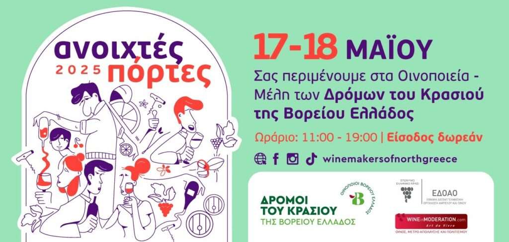 Τον νέο κύκλο ζωής του αμπελιού γιορτάζουν μέσα στην ανοιξιάτικη φύση 32 οινοποιεία της Βόρειας Ελλάδας, τα οποία θα ανοίξουν τις πόρτες τους στις 17 και 18 Μαΐου, καλώντας τις φίλες και τους φίλους του ελληνικού κρασιού να βιώσουν εμπειρίες όπως ξεναγήσεις, γευστικές δοκιμές και διάφορες εκδηλώσεις, ακολουθώντας μία -ή περισσότερες- από τις οκτώ διαφορετικές διαδρομές των «Δρόμων του Κρασιού» από την Κρανιά Ολύμπου, στη Ζίτσα στα Ιωάννινα και από εκεί σε όλη τη Μακεδονία, έως την Αδριανή στη Δράμα και τη Φωλιά Καβάλας.