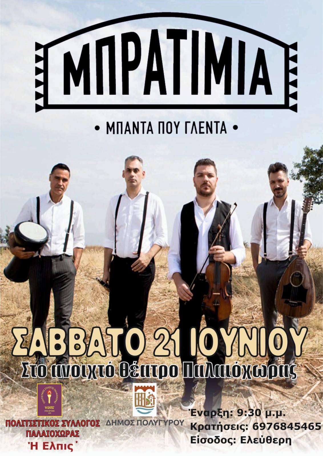 Ο Πολιτιστικός Σύλλογος Παλαιόχωρας Χαλκιδικής ” Η Ελπίς”, σε συνεργασία με τον δήμο Πολυγύρου, σας προσκαλούν στην εκδήλωση που θα πραγματοποιηθεί στο Ανοιχτό Θέατρο Παλαιόχωρας Χαλκιδικής το Σάββατο 21 Ιουνίου 2025 και ώρα 21.30.
