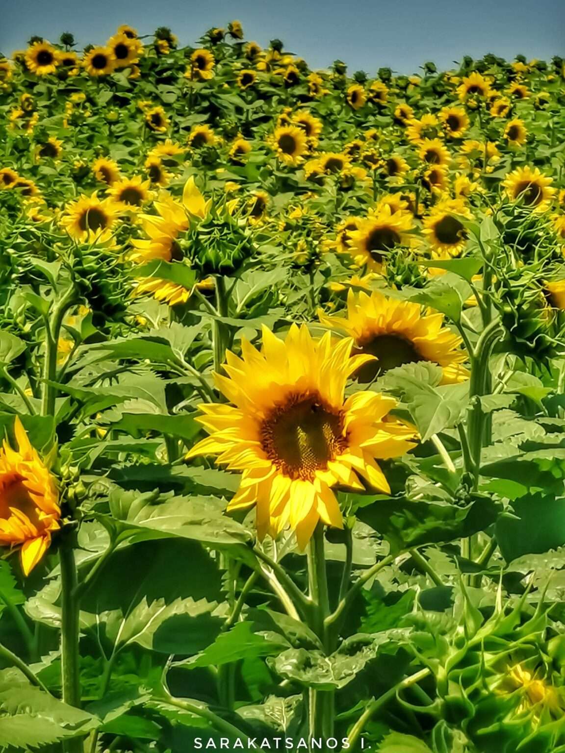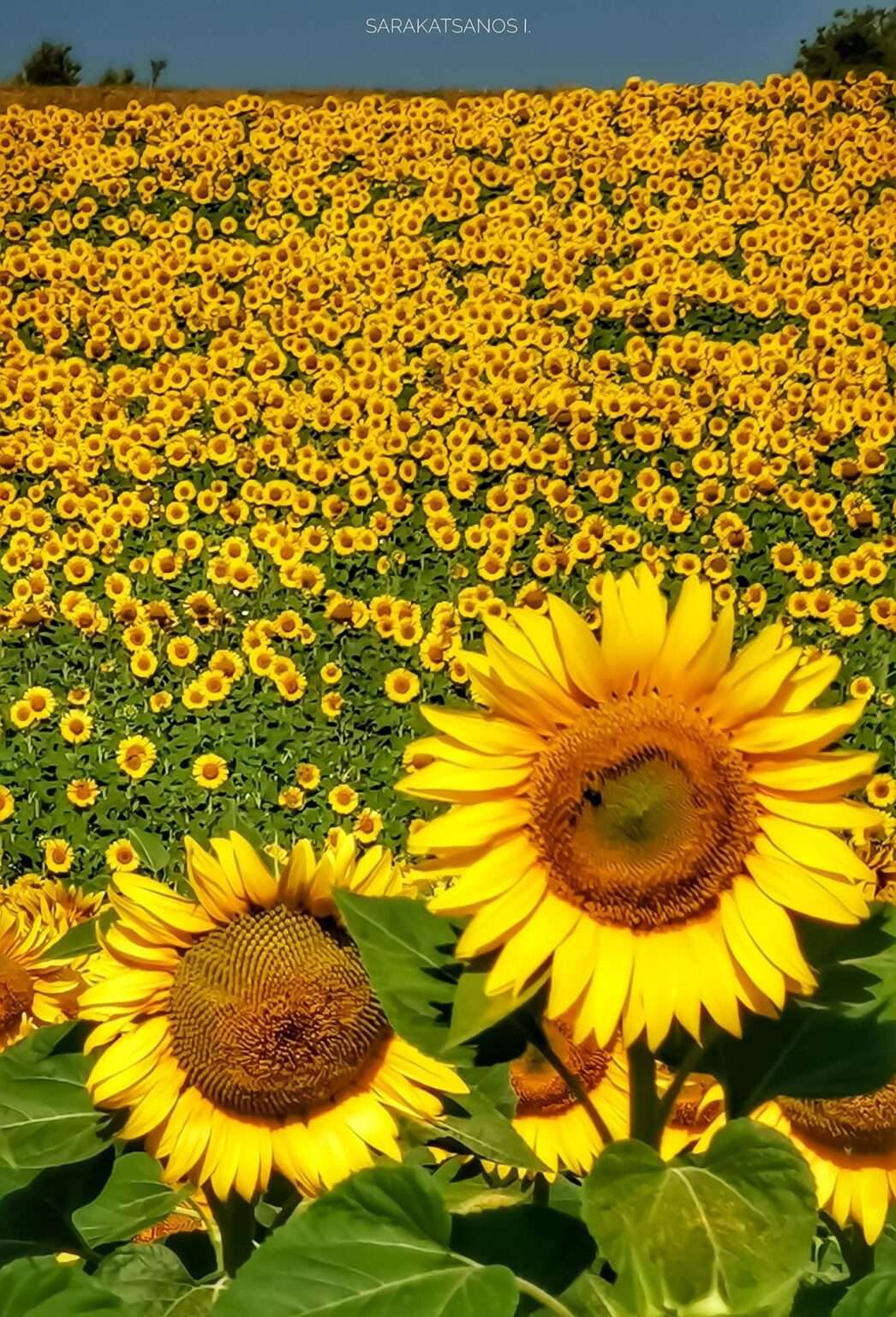 Μαγικές είναι οι εικόνες που έρχονται από τα χωράφια γεμάτα ηλίανθους στην Άφυτο της Χαλκιδικής. Ο ηλίανθος (Helianthus) είναι γένος αγγειόσπερμων δικότυλων φυτών που ανήκει στην οικογένεια των Σύνθετων (Compositae) της τάξης των Αστερωδών (Asterales). Περιλαμβάνει 65 ως 100 περίπου είδη, πολυετή ή μονοετή ποώδη, ιθαγενή της αμερικανικής ηπείρου. Υπάρχουν αναφορές για την καλλιέργεια του από το 3000 π.χ. Το ύψος του ηλίανθου είναι ψηλό ενώ τα φύλλα του είναι μεγάλα, ωοειδή, οδοντωτά στην περιφέρεια και τριχωτά.