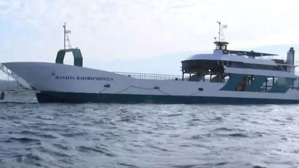 Σχεδόν ένα 24 αργότερα, το σκάφος «Παναγία Παραβουνιώτισσα» δεν έχει ακόμα απομακρυνθεί από την ξέρα.
