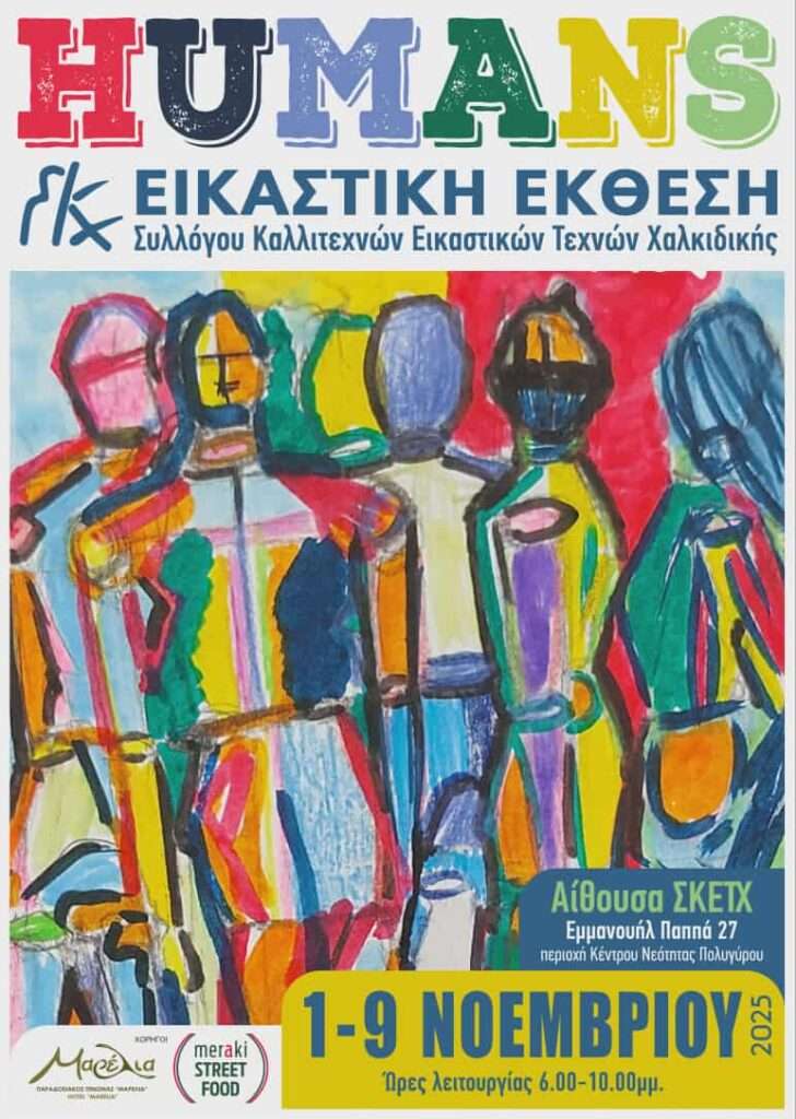 Ο Σύλλογος Καλλιτεχνών Εικαστικών Τεχνών Χαλκιδικής διοργανώνει και παρουσιάζει την φθινοπωρινή ομαδική εικαστική έκθεσή του με τίτλο “HUMANS”.