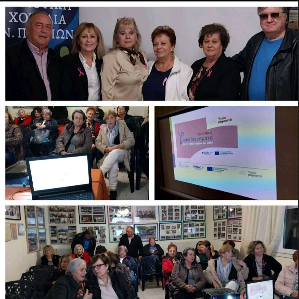 Η εκδήλωση περιελάμβανε παρουσίαση και ενημέρωση από τη μαία, κα Ζέφη Μήτου, η οποία ανέλυσε με απλό και κατανοητό τρόπο τη σημασία της πρόληψης, της έγκαιρης διάγνωσης και της φροντίδας της υγείας του μαστού.