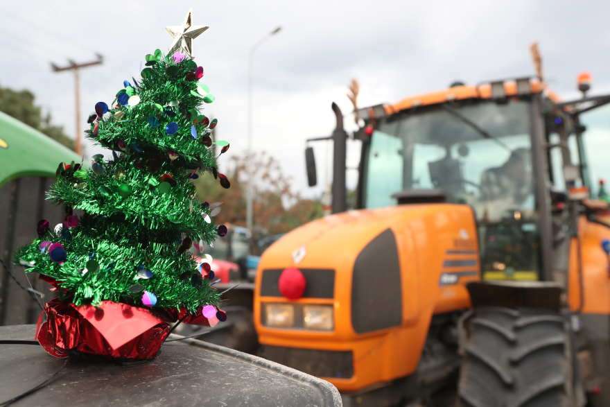 Παρά την ένταση, το θέαμα ήταν εντυπωσιακό. Δεκάδες τρακτέρ, στολισμένα με Χριστουγεννιάτικα φωτάκια, κινούνταν σε κομβόι από την Ανατολική Θεσσαλονίκη με κατεύθυνση τα “Πράσινα Φανάρια”, δίνοντας έναν απρόσμενο γιορτινό τόνο στη δυναμική πορεία τους.