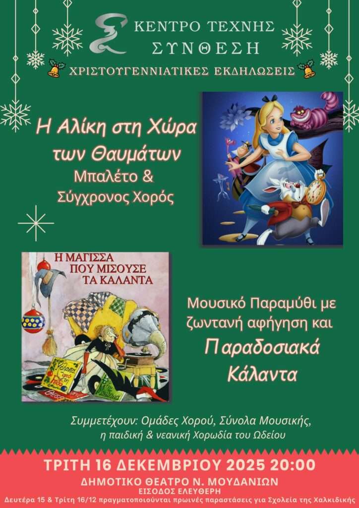 Καθώς τα Χριστούγεννα πλησιάζουν οι μαθητές του Κέντρου Τέχνης Σύνθεση ετοιμάζονται πυρετωδώς και σας προσκαλούν στις Χριστουγεννιάτικες Παραστάσεις. Με πολύ Μουσική και Χορό θα μπούμε και φέτος στο πνεύμα των Εορτών, ταξιδεύοντας σε κόσμους παραμυθένιους.