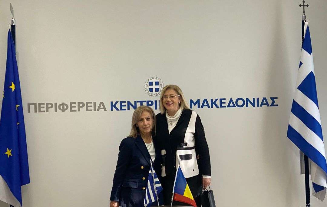 Συνάντηση με τη Γενική Πρόξενο της Ρουμανίας στη Θεσσαλονίκη Κορίνα Κρέτσου είχε την Παρασκευή η Περιφερειάρχης Κεντρικής Μακεδονίας Αθηνά Αηδονά, στο γραφείο της στο Κτίριο Διοίκησης της Περιφέρειας στη βίλα Αλλατίνι.