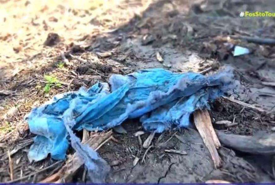 Πλησίασα και είδα μια σακούλα και δίπλα μια βαλίτσα με κουβέρτες και άλλες σκισμένες σακούλες τριγύρω. Πάνω στα οστά είδα άσπρα “μαλλιά”, αλλά τελικά ήταν από την κουβέρτα. Αναρωτήθηκα τι μπορεί να είναι αυτό. Πήρα ένα ξύλο και άρχισα να σκαλίζω τη σακούλα. Τότε είδα ένα χέρι με μια βέρα, από την οποία ελπίζω να μπορέσουν να βρουν κάποιο στοιχείο. Μου φάνηκε επίσης ότι φορούσε κάτι σαν γυναικείο ρούχο, χοντρό, με φαρδιά μανίκια. Από αυτό, αλλά και από τη μορφή του χεριού, σκέφτηκα πως το πτώμα πιθανότατα άνηκε σε γυναίκα», λέει εμφανώς συγκλονισμένος.