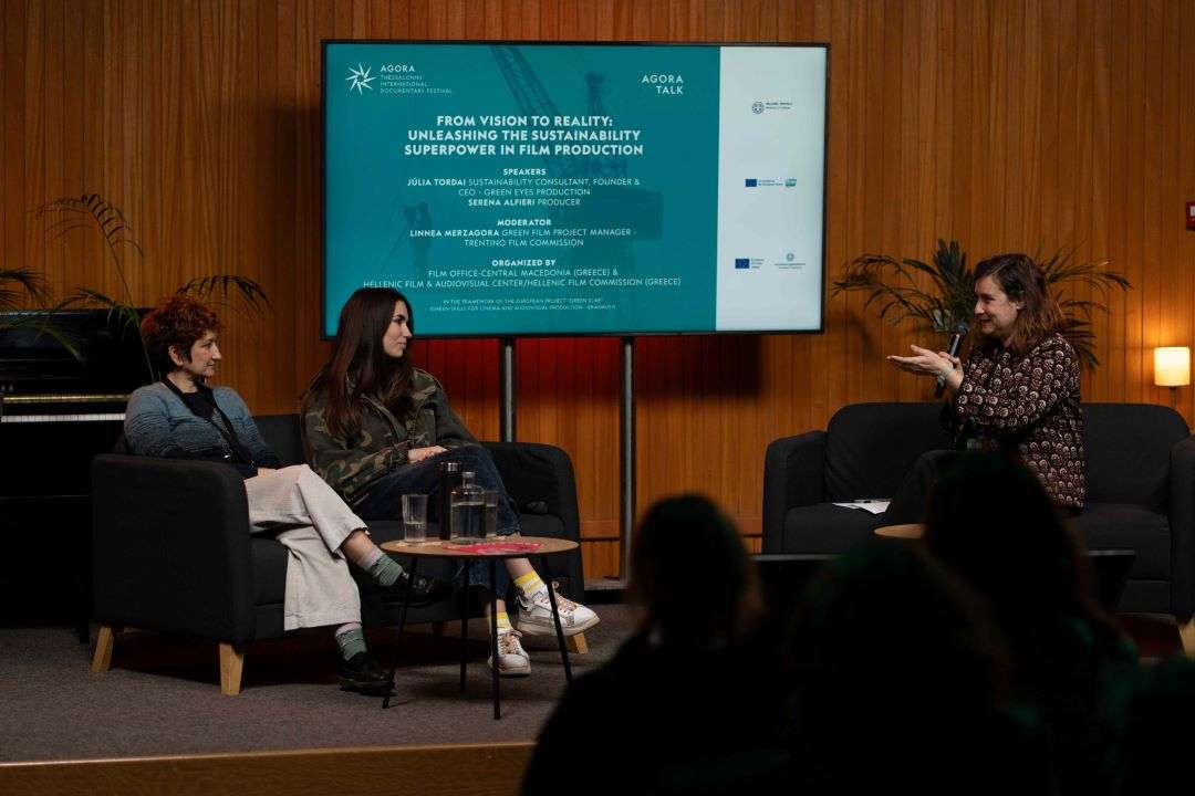 · η κινηματογραφική παραγωγός Δανάη Σπαθάρα (Heretic), απόφοιτος του Green Film Lab Athens, μίλησε για τις πρακτικές ενσωμάτωσης των αρχών της βιωσιμότητας σε ένα κινηματογραφικό γύρισμα, παρουσιάζοντας παραδείγματα από πρόσφατες παραγωγές στην Ελλάδα.