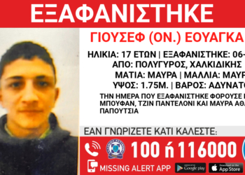 Εξαφάνιση 17χρονου στον Πολύγυρο Χαλκιδικής. Το «Χαμόγελο του Παιδιού» εξέδωσε Missing Kid Alert καθώς υπάρχουν φόβοι για την ασφάλειά του.