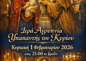 Περισσότερα...DetailsΙερά Αγρυπνία για την εορτή της Υπαπαντής του Σωτήρος Χριστού θα τελεστεί την Κυριακή 1 Φεβρουαρίου 2026 στον Ιερό Ναό...