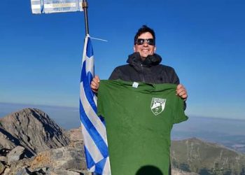 Με Άγγελο Κρόκο ο Βάβδος στην υψηλότερη κορυφή της Ελλάδας! Ο ποδοσφαιριστής της Αναγέννησης ανέβασε τη φανέλα με το λύκο...