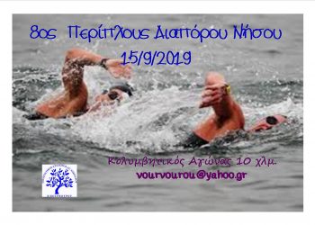 Ο Πολιτιστικός Σύλλογος Αγίου Νικολάου "Η Βουρβουρού" διοργανώνει τον 8o Περίπλους Διαπόρου Νήσου, κολυμβητικός αγώνας 10 χλμ, την Κυράκη 15...