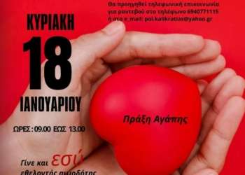 Εθελοντική αιμοδοσία στο 2ο Δημοτικό Σχολείο Νέας Καλλικράτειας την Κυριακή 18 Ιανουαρίου, από τον Πολιτιστικό Σύλλογο της περιοχής.