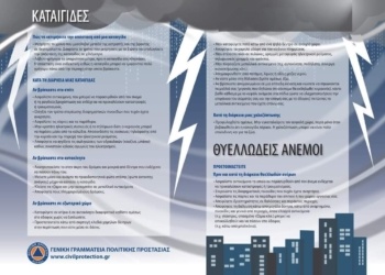 Ανακοίνωση από την Αυτοτελή Διεύθυνση Πολιτικής Προστασίας της ΠΚΜ για έκτακτο δελτίο επικίνδυνων καιρικών φαινομένων.