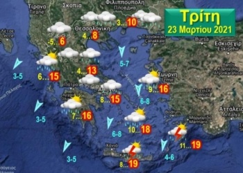 Περισσότερα...DetailsΗλιοφάνεια σ΄ όλη τη χώρα τη Δευτέρα με μικρή άνοδο της θερμοκρασίας - Τοπικές βροχές την Τρίτη και την Τετάρτη ...