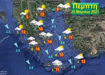 Περισσότερα...DetailsΑυξημένη συννεφιά από το μεσημέρι της Παρασκευής με τοπικές βροχές στη βόρεια και κεντρική χώρα και λίγα χιόνια στο βόρεια ...