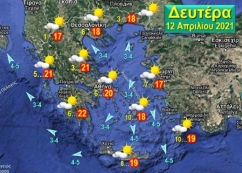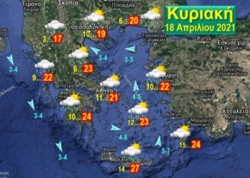 Περισσότερα...DetailsΑίθριος καιρός αναμένεται την Κυριακή 11 Απριλίου 2021. Θερμοκρασία σε μικρή άνοδο. Άνεμοι έως 6 μποφόρ στο Νοτιοανατολικό Αιγαίο.